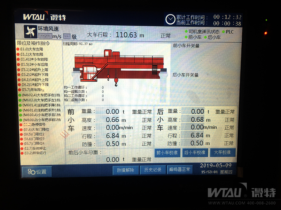 ▲橋機(jī)運(yùn)行監(jiān)測可視狀態(tài)