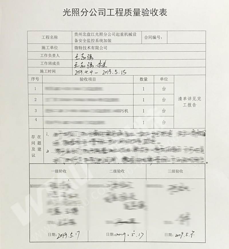 貴州北盤江光照分公司安全監(jiān)控系統(tǒng)加裝項(xiàng)目在客戶要求定檢時(shí)間前完工并且一次性通過電廠內(nèi)部三級驗(yàn)收且無整改項(xiàng)目,驗(yàn)收現(xiàn)場得到客戶肯定。同時(shí),項(xiàng)目已順利通過黔西南特種設(shè)備監(jiān)督檢驗(yàn)。