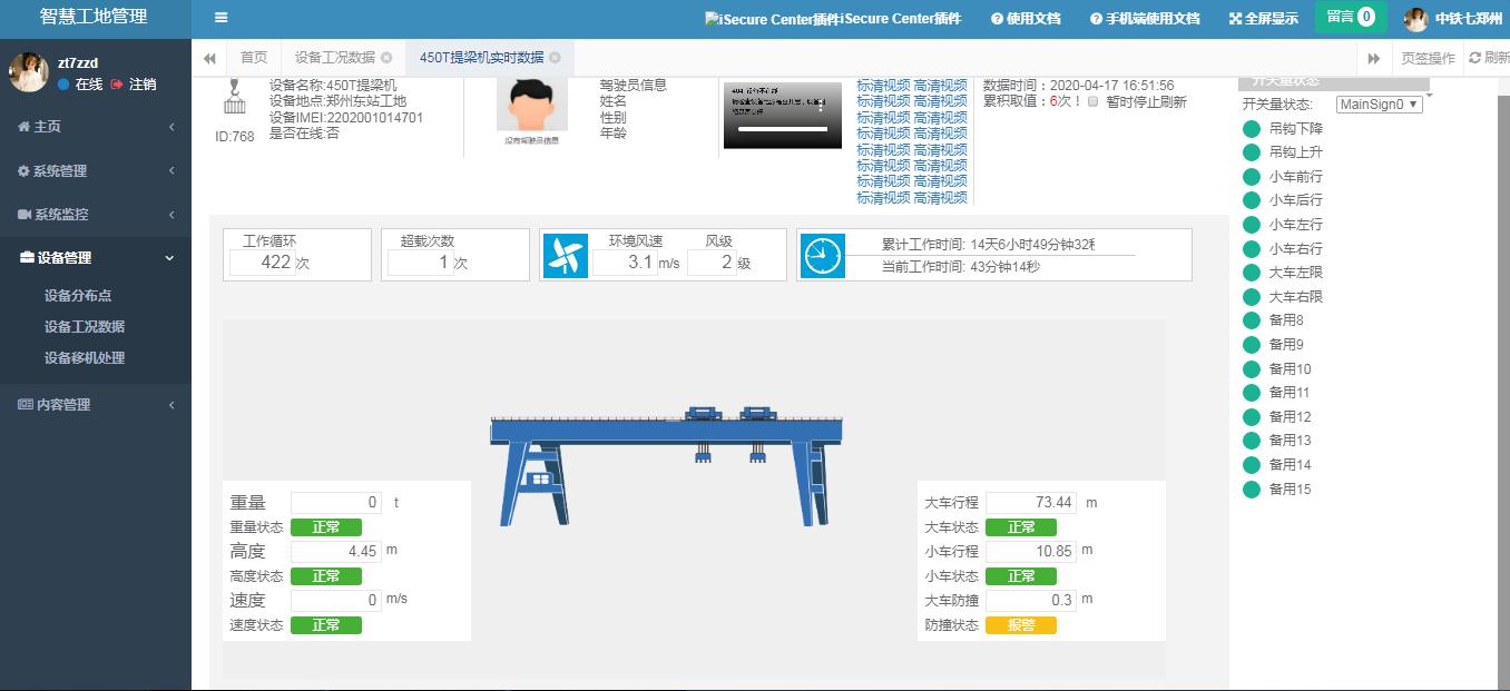 近期,由微特技術(shù)有限公司承接的中鐵七局提梁機安全監(jiān)控管理系統(tǒng)順利通過驗收,產(chǎn)品已交付使用。