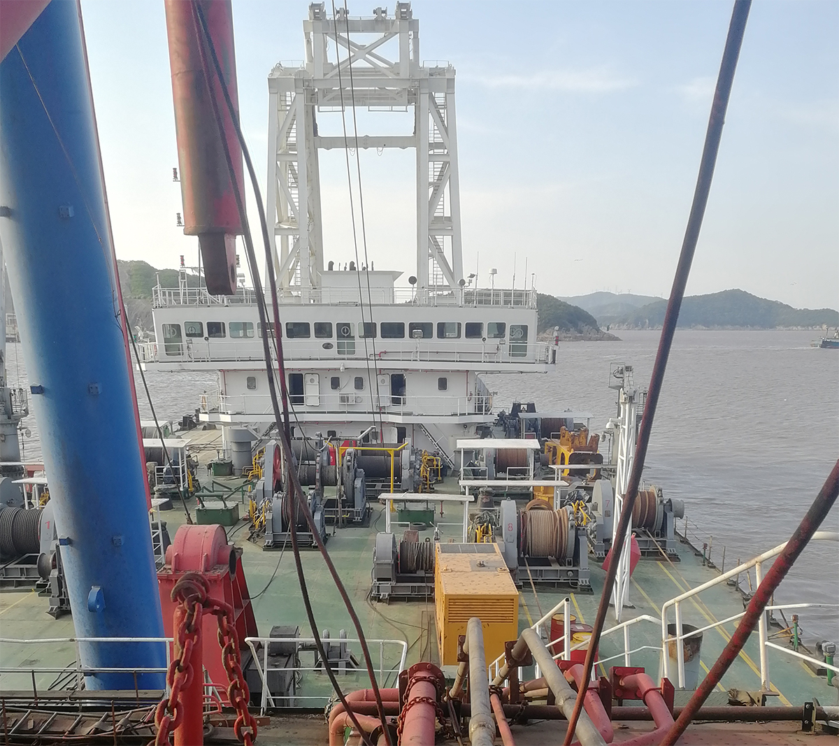 大橋海威951號(hào)從江蘇靖江東方船廠出廠,并將在靖江恒德通用碼頭打響第一錘。“海威951”打樁船船長(zhǎng)74米,船寬52米,樁架長(zhǎng)95米,為國(guó)內(nèi)最高的樁架。它一次插打的樁長(zhǎng)為82米加水深。