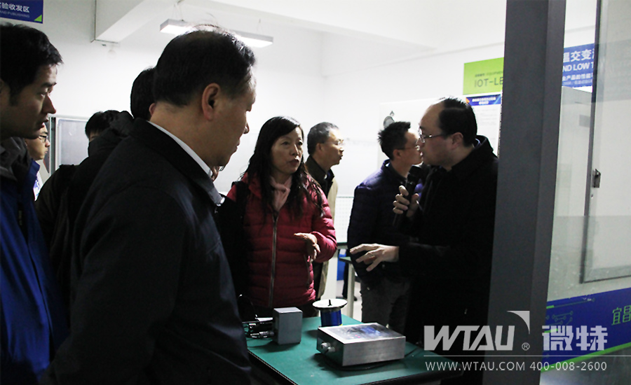 微特電子高總向來(lái)訪領(lǐng)導(dǎo)和專家介紹傳感物聯(lián)實(shí)驗(yàn)室的建設(shè)和使用情況