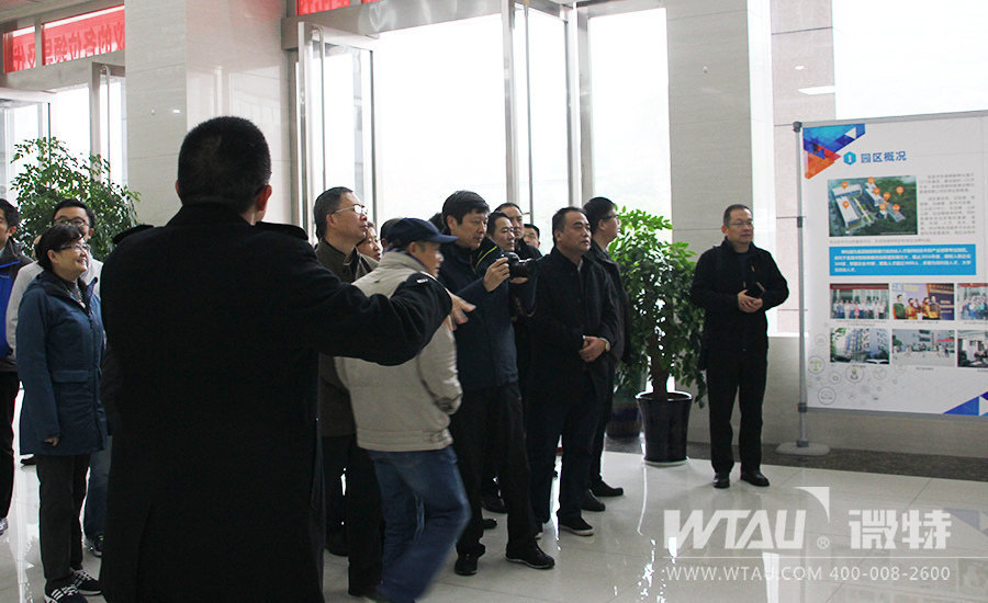 微特電子聶總向來(lái)訪領(lǐng)導(dǎo)和專家介紹微特眾創(chuàng)工坊的建設(shè)和使用情況