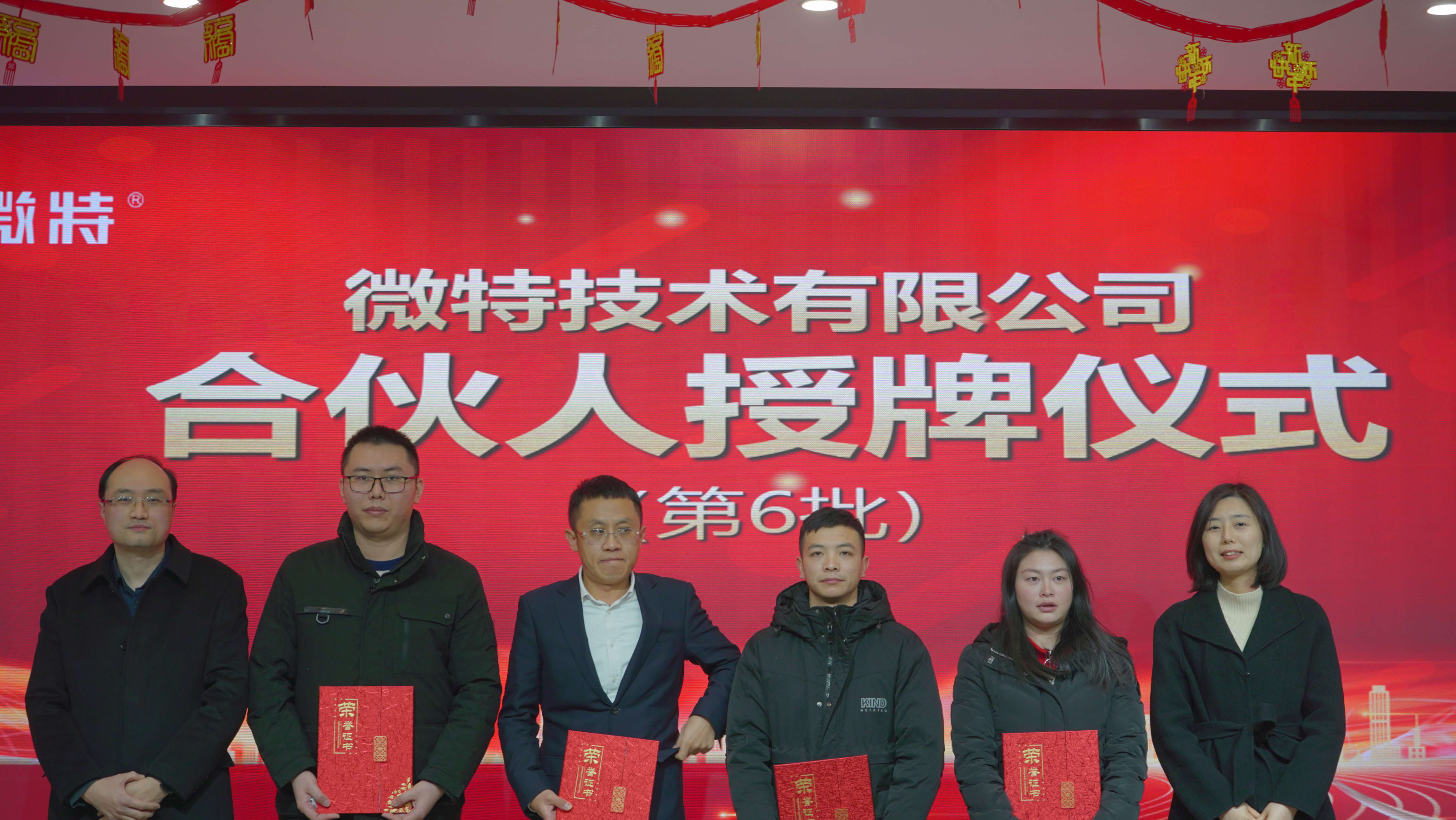 隨后,微特2023年“微特合伙人授牌儀式”隆重舉行。總經(jīng)理高鈺敏和合伙人組織部部長王俐為2023年新晉合伙人授牌。這是對(duì)他們多年奮斗和工作業(yè)績的肯定,也是微特堅(jiān)持讓事業(yè)的奮斗者、責(zé)任的擔(dān)當(dāng)者擁有更多的決策權(quán)和分享權(quán)這一理念的實(shí)際行動(dòng)。新晉合伙人張斌作為代表上臺(tái)發(fā)言:美好常在,新歲啟封,這個(gè)冬天不太冷,我們相聚在此來分享一年的喜悅和汗水。首先感謝公司對(duì)我的認(rèn)可,這是對(duì)我成長最好的肯定。作為一名新晉合伙人,首先我將嚴(yán)格要求自己,在日常工作中保持清晰思路,時(shí)刻牢記全年目標(biāo),以此為導(dǎo)向推進(jìn)相關(guān)工作;其次做好日常管理工作,以結(jié)果為導(dǎo)向進(jìn)行內(nèi)部管理,協(xié)調(diào)好客戶和我方的工作銜接,打造服務(wù)型團(tuán)隊(duì);然后在市場(chǎng)開拓方面,做到大膽想細(xì)心試,借助現(xiàn)有基礎(chǔ)完成產(chǎn)品的迭代和推廣,為長遠(yuǎn)發(fā)展注入源頭活水。行遠(yuǎn)自邇、登山自卑,在新的一年里,我將不負(fù)眾望、站穩(wěn)腳下,去爭(zhēng)取新的未來和光明。祝大家新年快樂,樂享其中,終得美好。