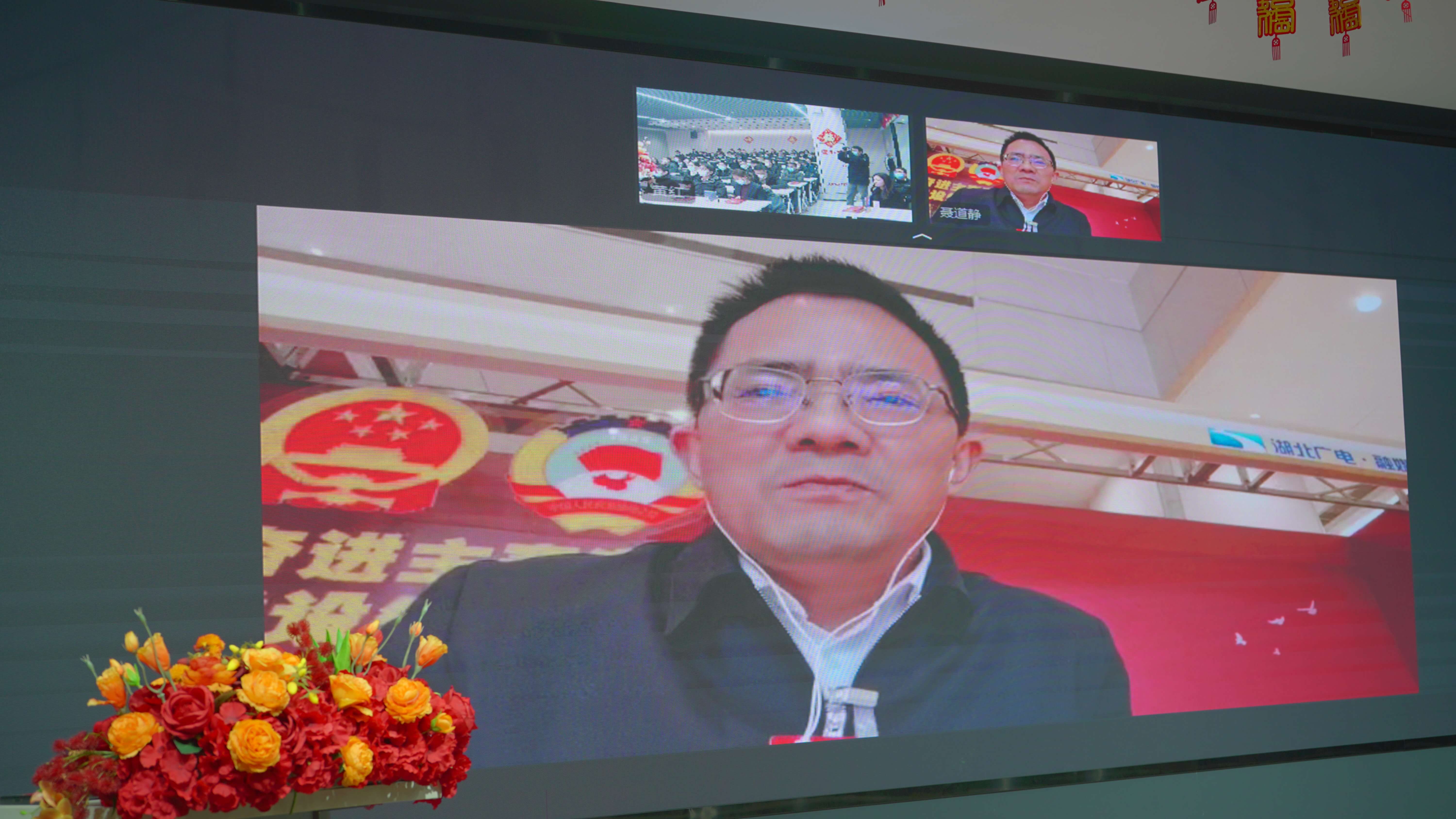 因?yàn)槎麻L聶道靜連任省人大代表,目前正在武漢參加湖北省第十四屆人民代表大會(huì)第一次會(huì)議,履行人大代表的職責(zé)工作,所以不能參加年終慶典。但他時(shí)刻心系家人,在人大會(huì)短暫的休息間他撥通視頻電話與年會(huì)現(xiàn)場(chǎng)進(jìn)行了遠(yuǎn)程連線。